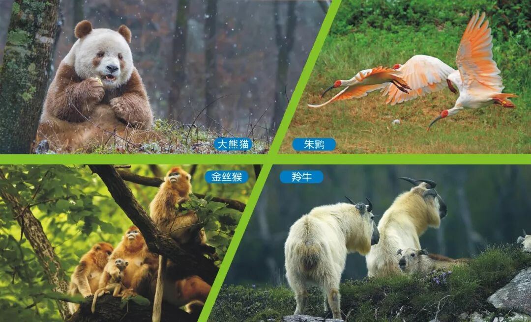 珍稀野生动植物种群数量不断增加。先后出台《陕西省野生植物保护条例》《陕西省古树名木保护条例》等多部地方法规,珍贵物种得到有效保护。秦岭大熊猫由上世纪八十年代的109只增加到345只,增幅全国最高,野外种群密度居全国之首。朱鹮种群数量由7只发展到3000多只,被称为“世界拯救濒危物种的成功典范”。羚牛数量近5000头,金丝猴数量超过5000只。秦岭四宝——大熊猫、朱鹮、羚牛、金丝猴,2011年在西安世界园艺博览会上集体亮相,2019年组团成为第十四届全运会吉祥物标识。
