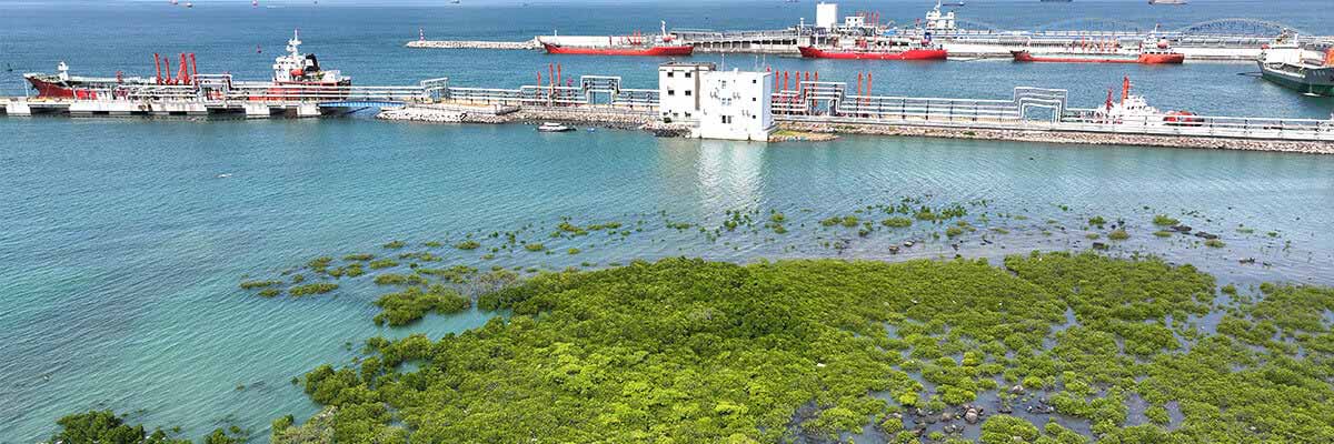 中国石化海南炼化公司(简称“海南炼化”)毗邻北部湾,是中东和非洲油气进入我国的第一节点,现已成为我国东南沿海重要的进口原油加工基地、成品油出口基地和芳烃生产基地。 海南炼化洋浦码头沿岸生长着地球上生态服务功能最高的自然生态系统之一——红树林,占地面积约5公顷。